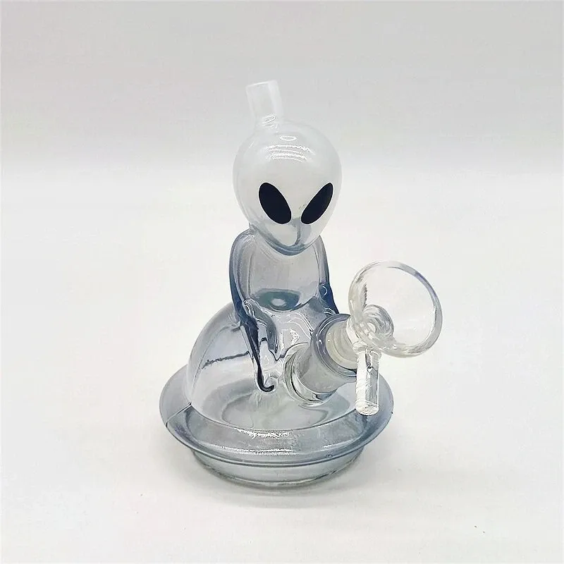 5 Inch Mini Bongs White Alien On UFO Glass Water Pipe Bong Bubbler Hookah 14MM